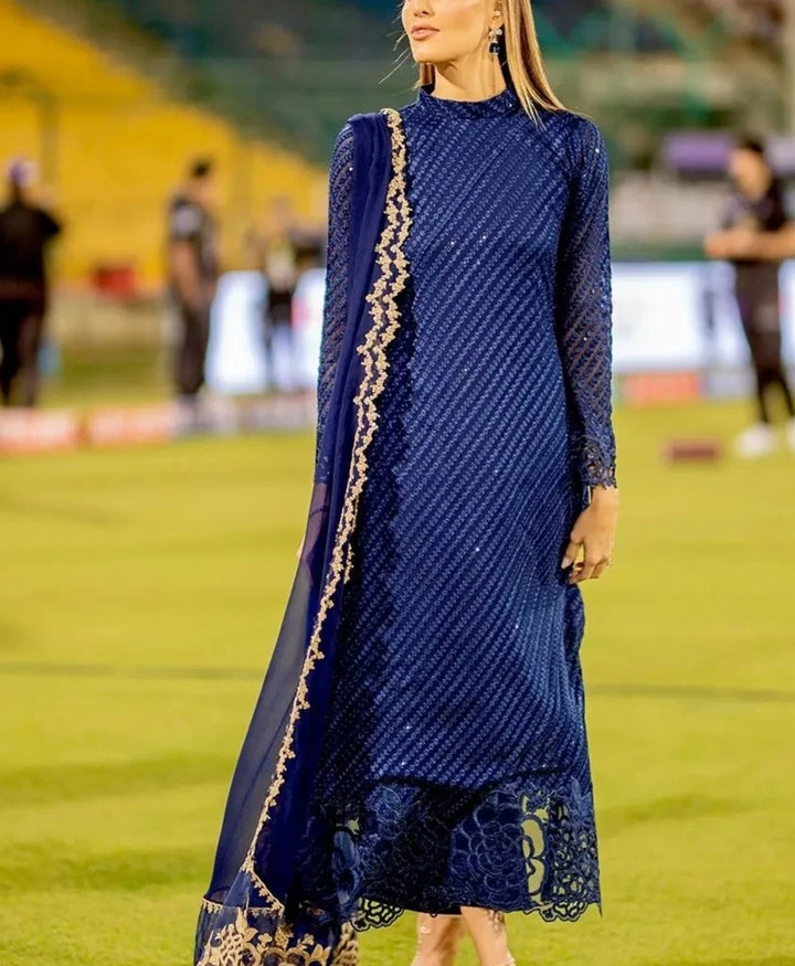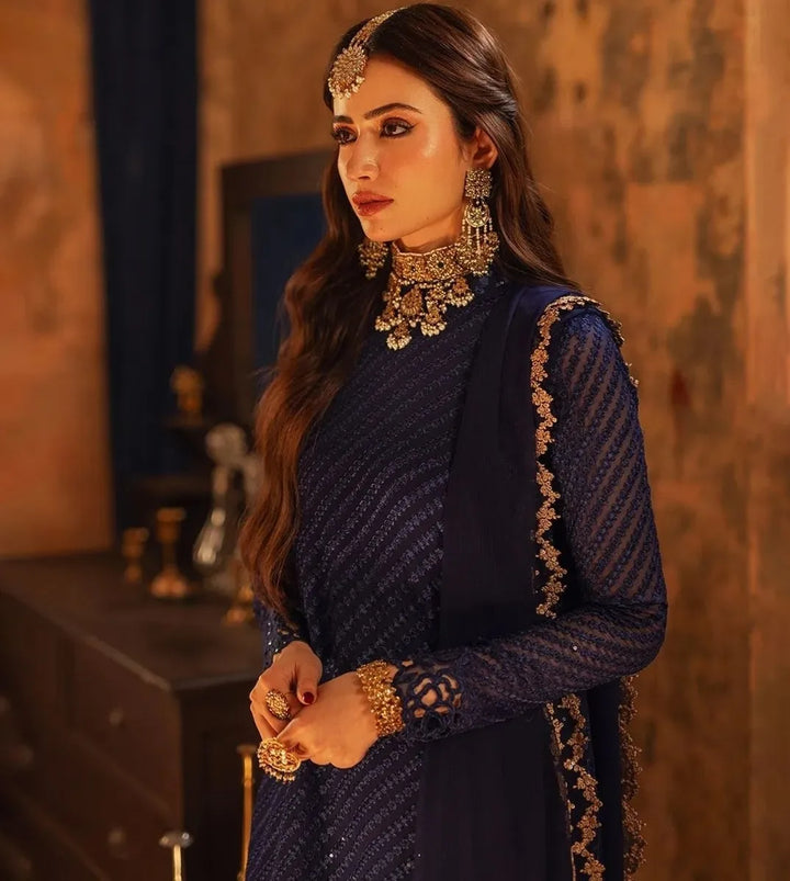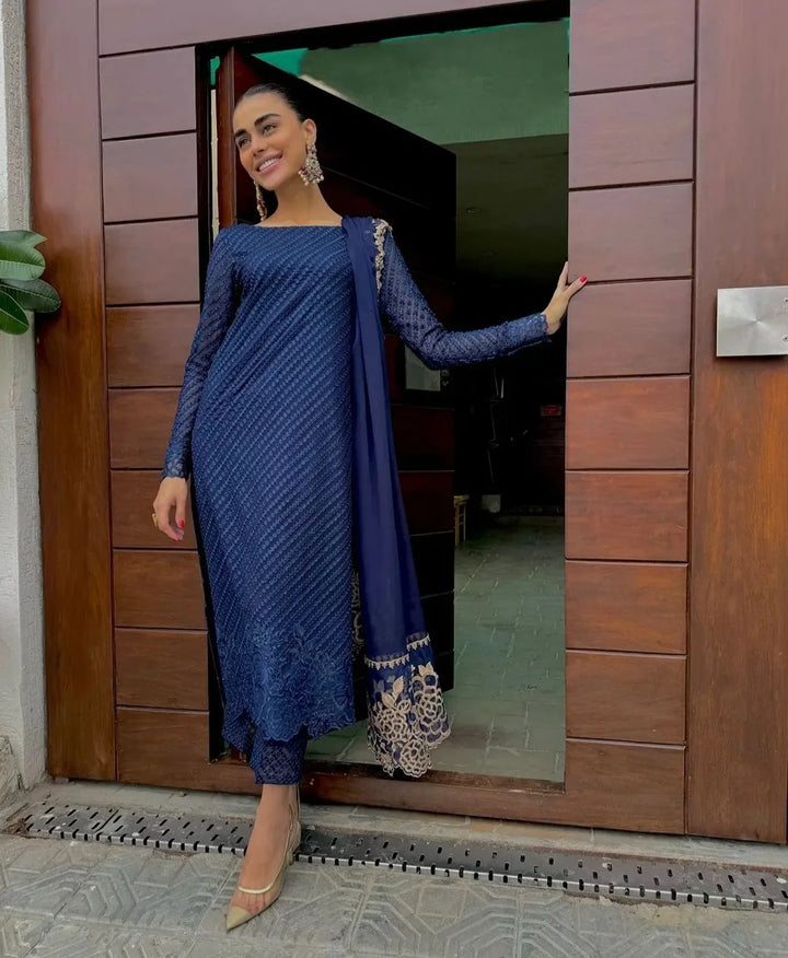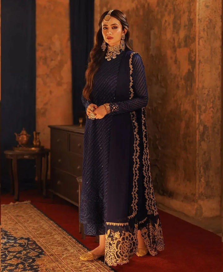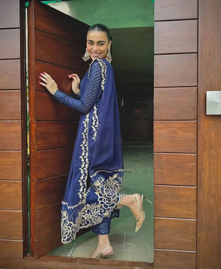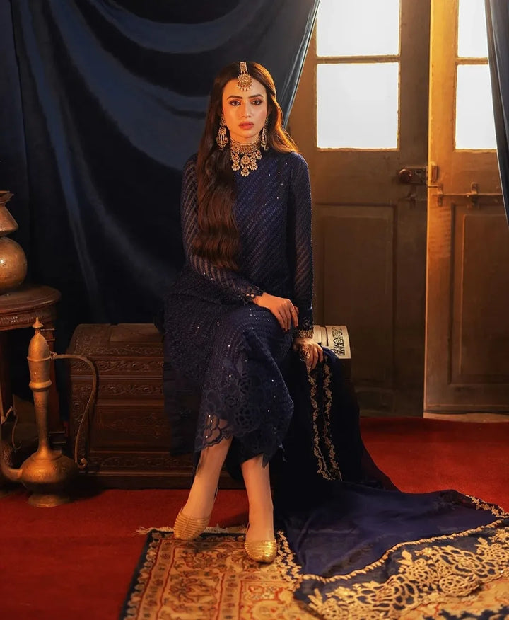 "Embrace the festive spirit with Sadaf Kanwal in our exquisite luxe ensemble, a perfect blend of tradition and glamour as she opted to celebrate her Eid with Azure.