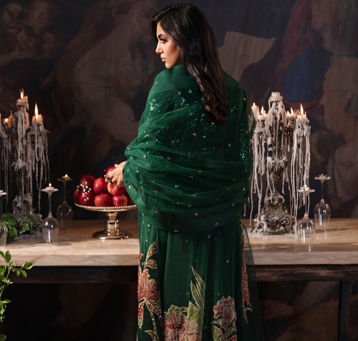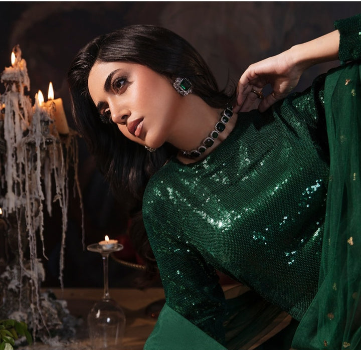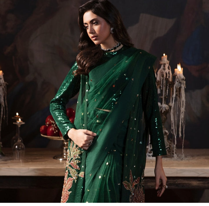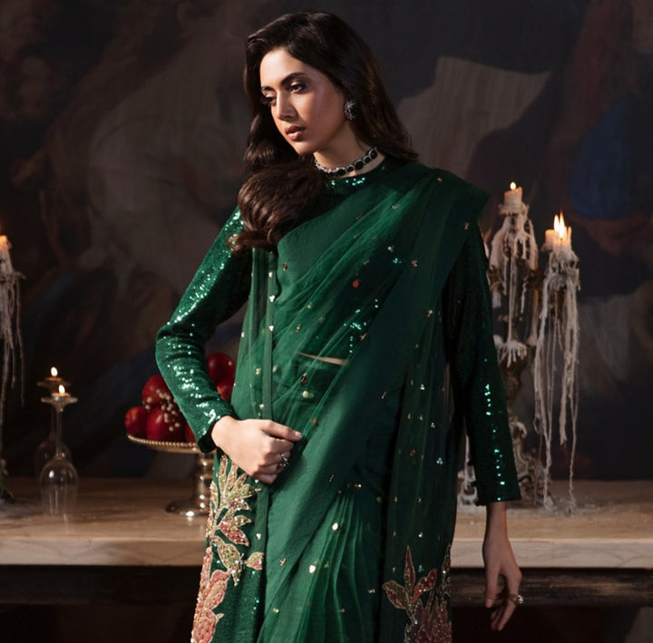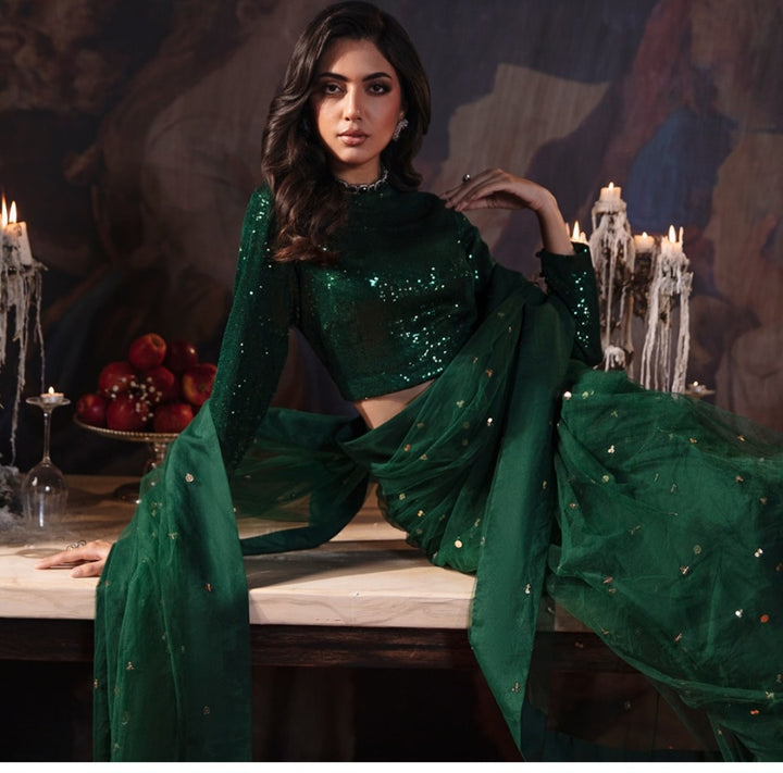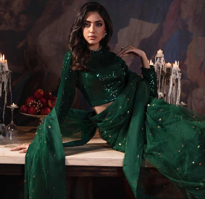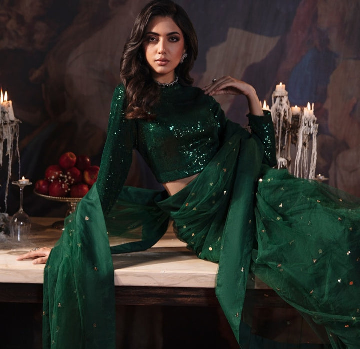 Charizma “Fully Stitched Saree” – Emerald Enchantment