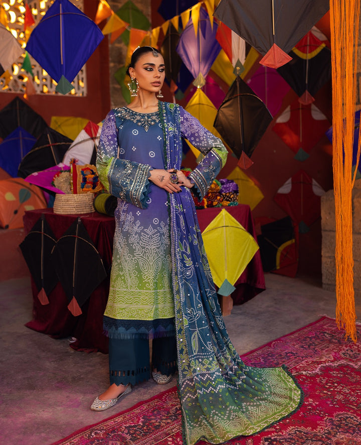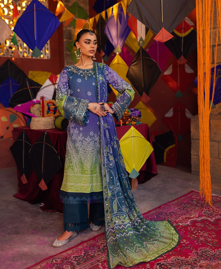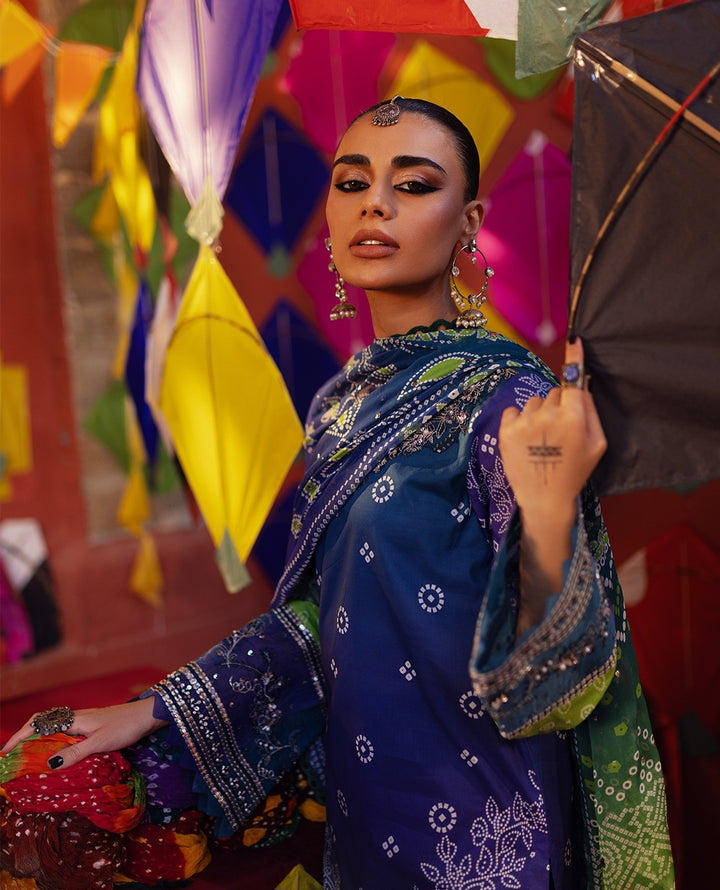 As the nureh girl steps into the city of cultural mix she glams up in the traditional printed dresses styled with blingy mukesh work chunri dupattas. Featuring exquisite designs this festive season.