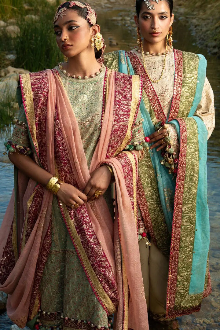 Glowing with brilliance, this ensemble marries rhythmic design with the resplendent imagery of Sana Safinaz in a refined display.