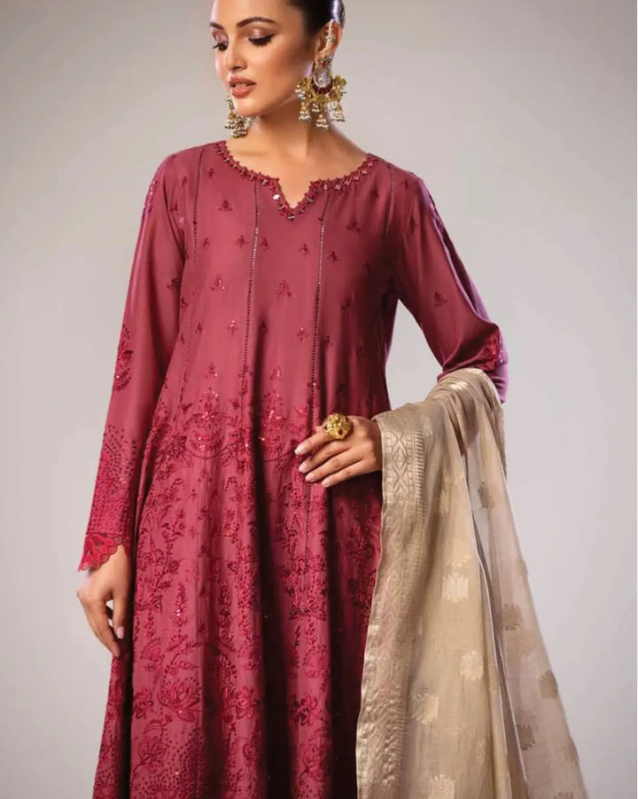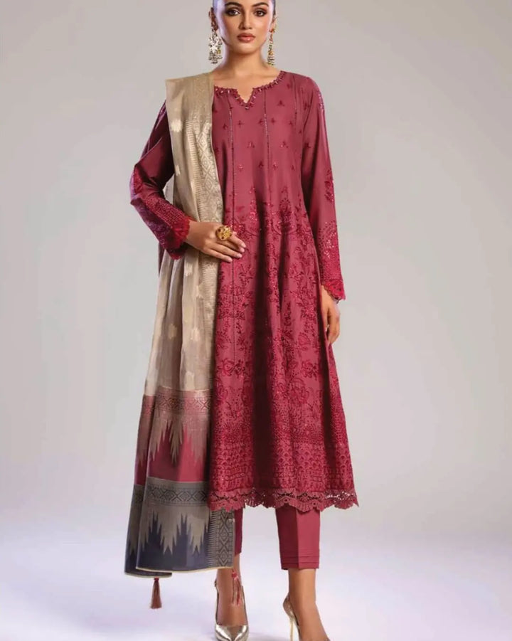 3 piece fully stitched item Embroidered ChickenKari Collection with Jacquard Dupatta