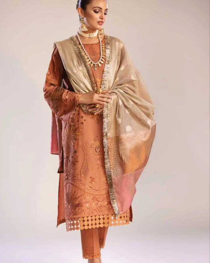 3 piece fully stitched item Embroidered ChickenKari Collection with Jacquard Dupatta