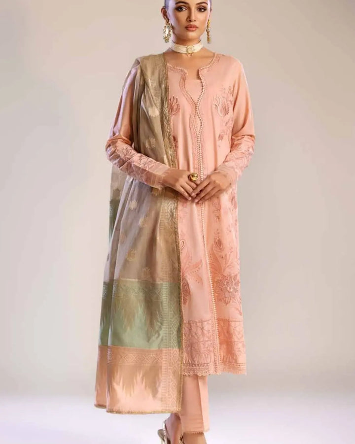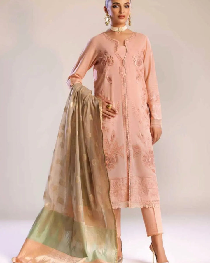 3 piece fully stitched item Embroidered ChickenKari Collection with Jacquard Dupatta